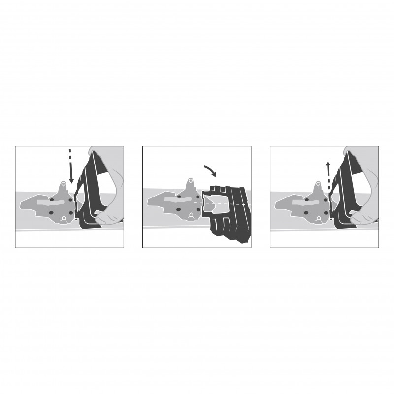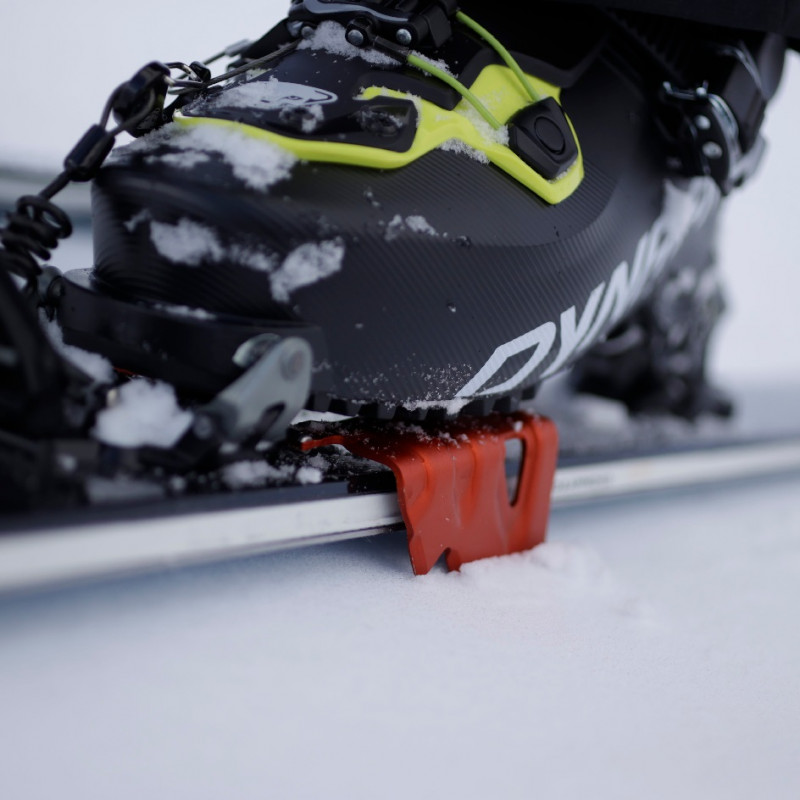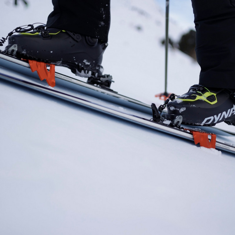 Um die Harscheisen in die Bindung einzulegen, sollte man nacheinander aus den Ski steigen. DYNAFIT Harscheisen können zwar auch montiert werden, wenn man in der Bindung steht, das erfordert aber viel Geschickt und Balance und ist nur Fortgeschrittenen zu empfehlen.