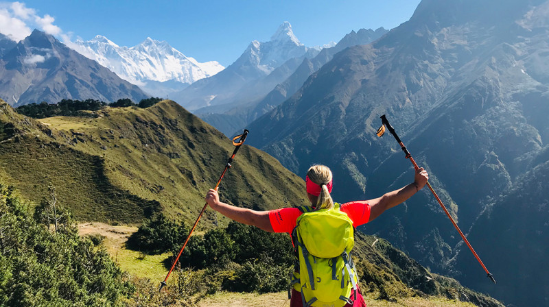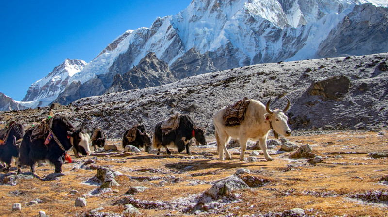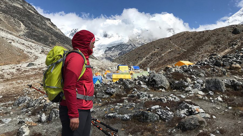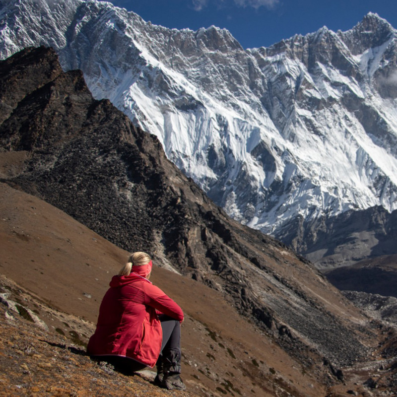 Arriving in Lobuche, at about 5,000 meters above sea level, in the middle of the Himalaya, the sky is blue, and the air is cool – or, better said, icy cold. On the way to Mount Everest base camp, we were in a long hall from which small bedrooms branch off. The walls are hardly thicker than particle board, which you notice in particular during the night. Hot showers are also a bit of a luxury up here, and you can’t really get yourself warmed up in the “sitting area.” With temperatures below freezing, you really just want to tuck yourself into your sleeping bag in your room with your down jacket and blanket over it all.