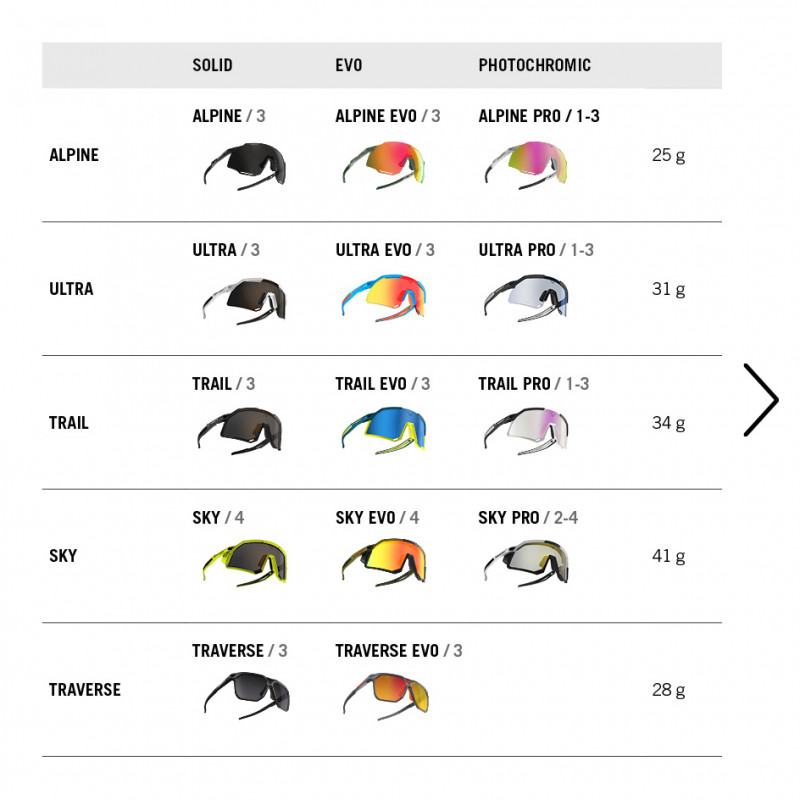 Intelligent design and feel nothing: The clever frame system of DYNAFIT sunglasses guarantees perfect fit and ensures secure grip when you head up and out. Air can still circulate well for top comfort for all activities. The symbiosis of GRILAMID TR90 and the ULTRA RUBBER GRIP results in extremely lightweight and durable sunglasses that provide you the optimal view in every situation.
