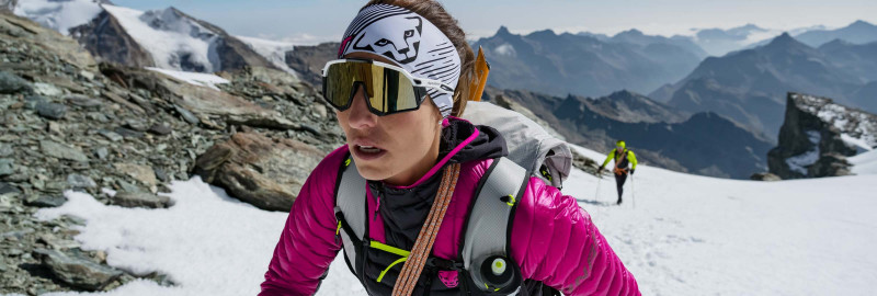 Quick transitions from sun to shadows, from blinding snow to deep woods or in swirling dust – your eyes have to put up with a lot during activities on the mountain. We developed our Eyewear Collection to ensure you are perfectly protected when out and about and still have full, clear vision even at high speeds. Our performance sunglasses and goggles deliver brilliantly clear contrasts, full color intensity, and limitless panoramas for trail running, mountaineering, or ski touring. Keep your athletic goals firmly in sight and open new perspectives. That is DYNAFIT Athlete Vision. 100% Handmade in Italy.