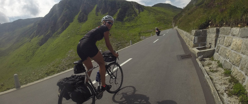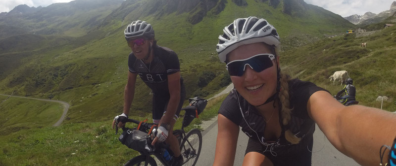 The next day we headed downward into the Ziller Valley and along mostly flat roads to Innsbruck to our next day’s destination in Landeck. This day served as recovery and it was quite important for me. Because, on the following day, the next pass was awaiting us. The third stage led us through Scuol, the incredibly beautiful Flüela Pass to Davos and then onward to Tiefencastel. Finally, on the third day, I began to feel quite comfortable on my bike. Plus, I didn’t sense the panniers much anymore. We made good progress and I knew that we’d arrive one day too early in Aosta. So, after arriving at the Oberalp Pass, we decided to spend an additional day in Andermatt. Once in Andermatt, behind us were 580 kilometers and 6,800 meters of climbing. From there we rode another lap on the next day. Crossing the Susten, Grimsel and Furka passes meant we had now experienced three real classics in the Swiss Alps. This was without a doubt the most beautiful stages and, at the same time, our crowning glory with 120K and 3,300 meters of climbing.