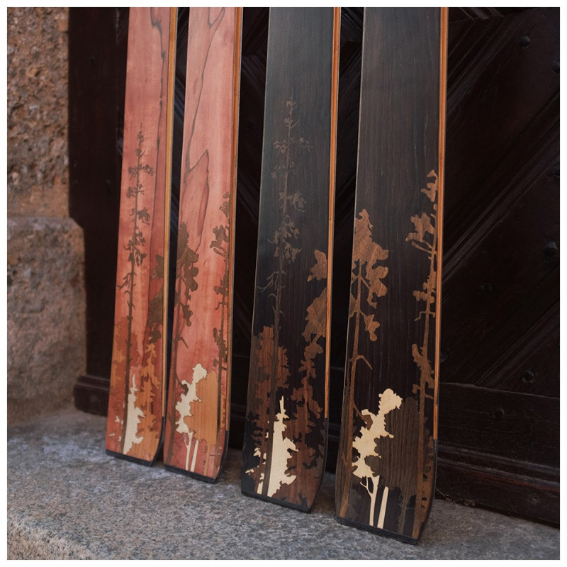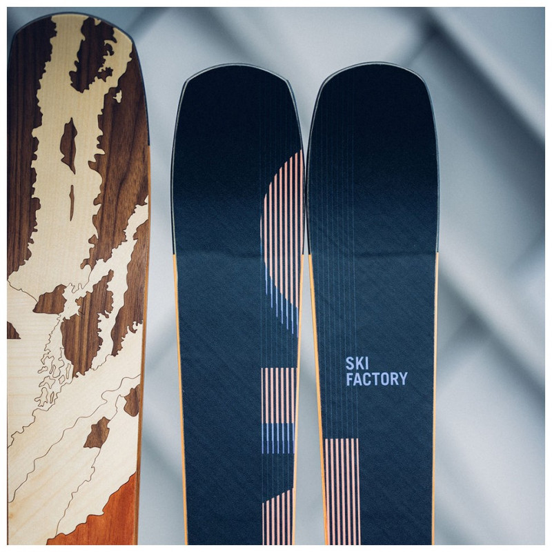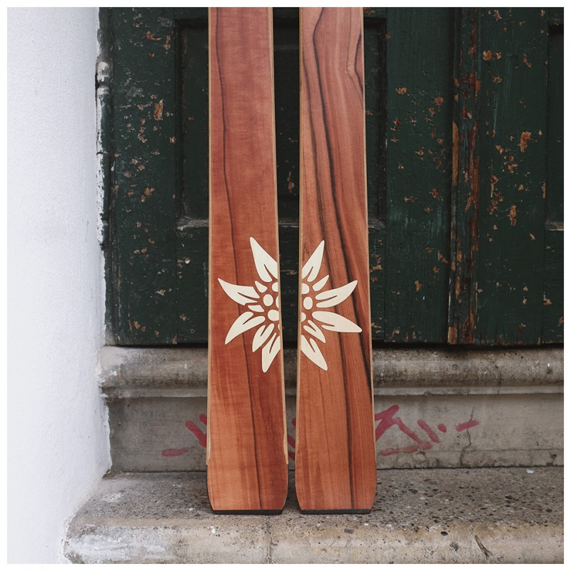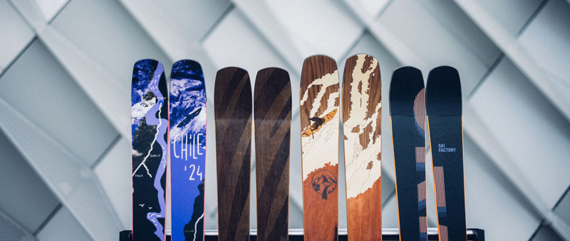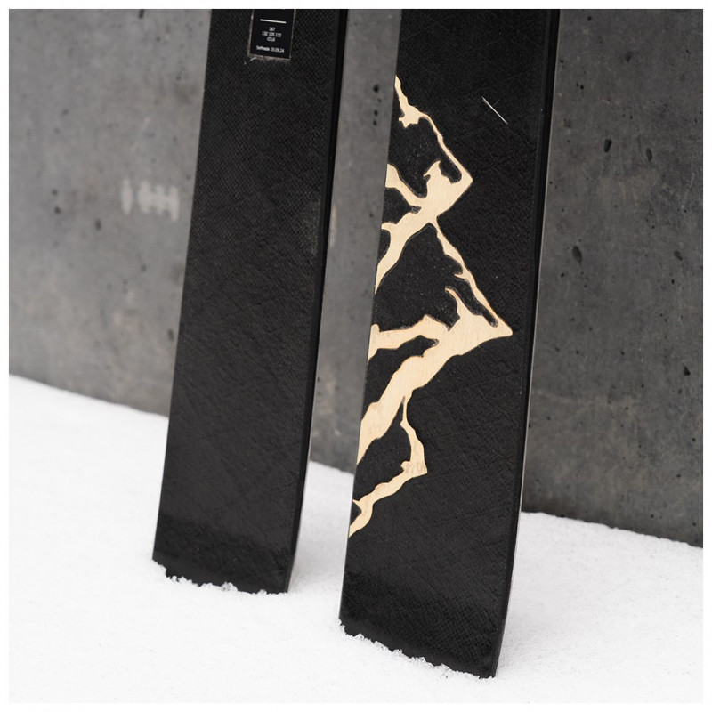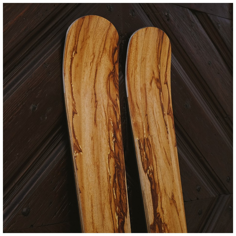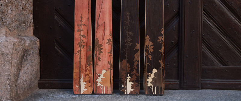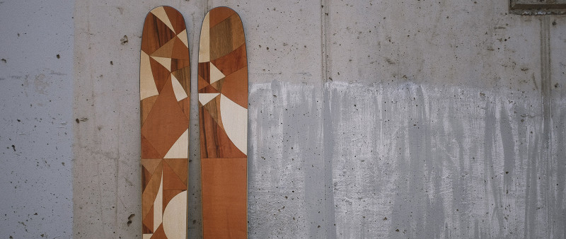 The possibilities for designing your skis are diverse. Shape, function, and appearance are inseparably connected. Once you've chosen the right shape, you can design the sidewalls and the surface of your skis. We offer you three options to realize your surface design: plastic topsheet, wood veneer, or a minimalist carbon surface.