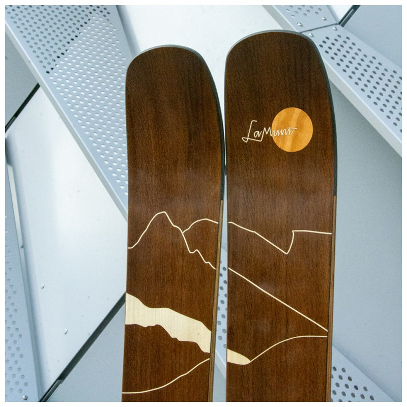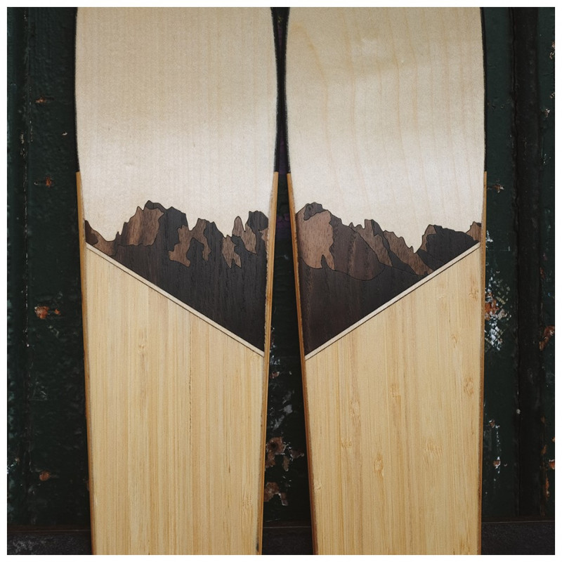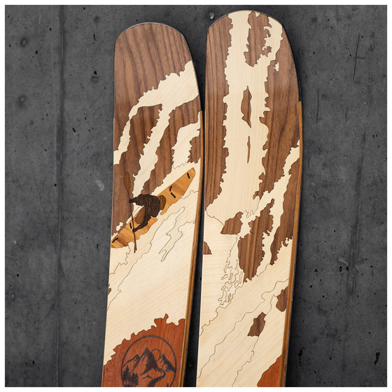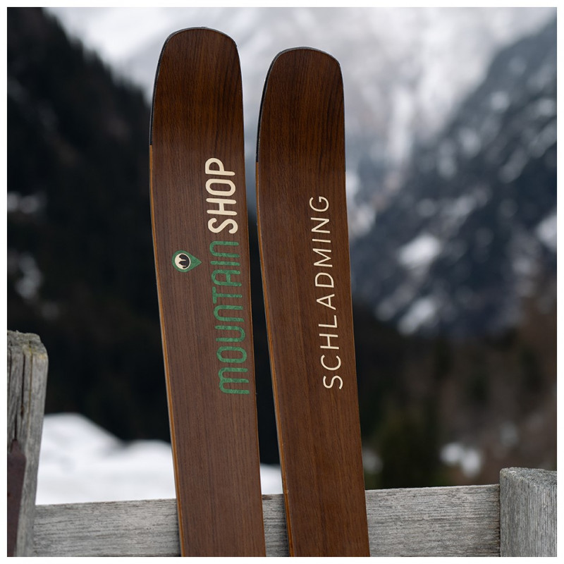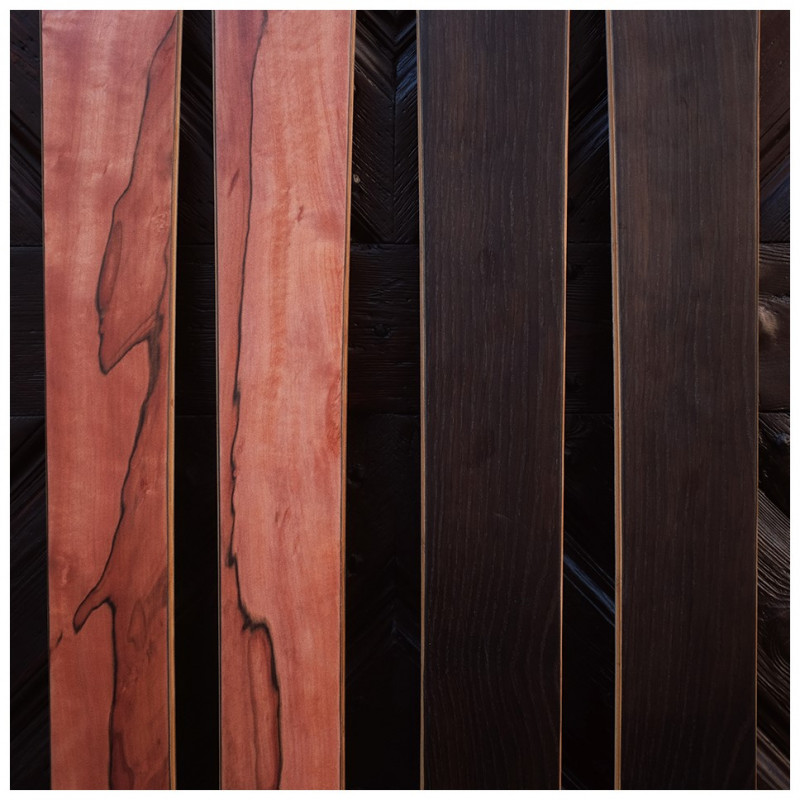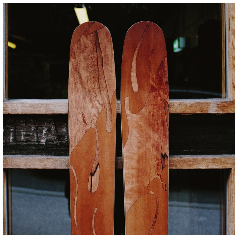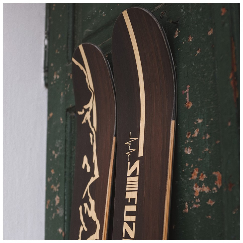 The possibilities for designing your skis are diverse. Shape, function, and appearance are inseparably connected. Once you've chosen the right shape, you can design the sidewalls and the surface of your skis. We offer you three options to realize your surface design: plastic topsheet, wood veneer, or a minimalist carbon surface.